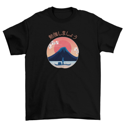 Beautiful Japanese Japan landscape Lake Sea Man Sailing Ship Boat Fuji