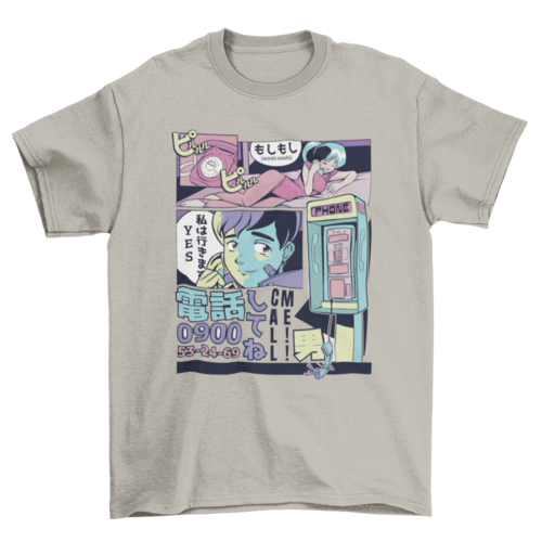 Call Me Japan Japanese Manga Panel Vaporwave People Calling On Phone